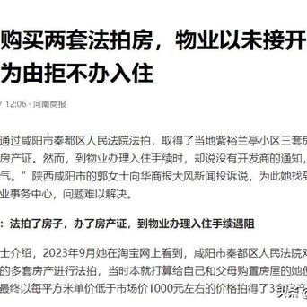 “物业都这么拽了?”陕西咸阳,一女子拍了3套法拍房,房产证也办了,可当她将两套房装修时,物业却拒绝为其办理收房手续,说有房产证没用,要开发商通知才行。女子气得向法院求助,法院表示可以提起诉讼,赢了就能强制执行。女子不想起诉,于是向职能部门投诉,可对方也说没办法,只能调解。